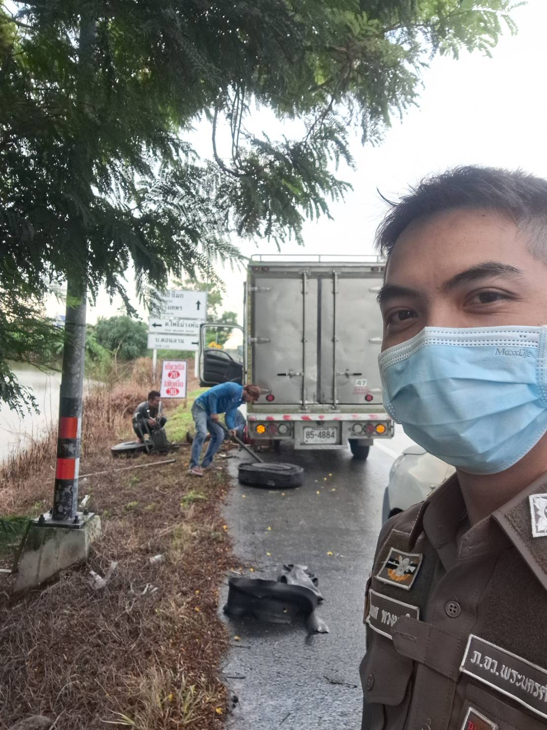 วันที่ 24 พฤศจิกายน 2567 จ.ส.ต.คเณศ พวงมะลิ เจ้าหน้าที่ตำรวจจราจร สภ.ลาดชะโด ได้ตรวจสอบอุบัติเหตุ แล