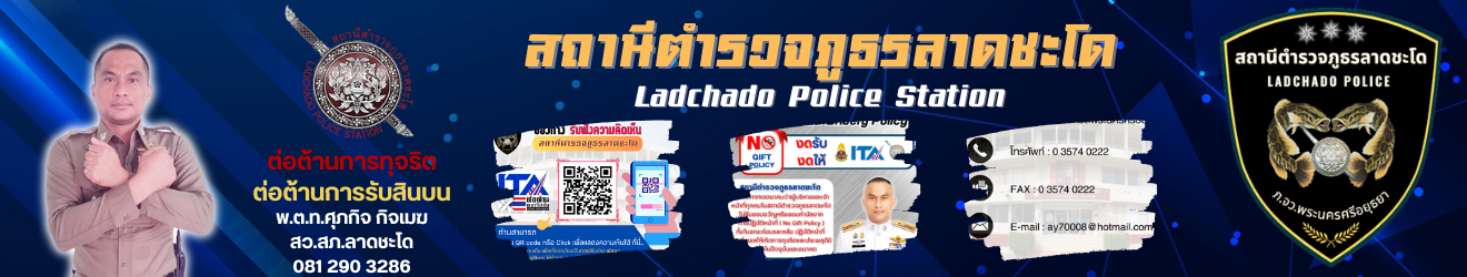 19 ตุลาคม 2567 ภายใต้การอำนวยการของ พ.ต.ท.ศุภกิจ กิจเมฆ สว.สภ.ลาดชะโด , ร.ต.ท.กฤษฎา สิทธิศักดิ์ รอง