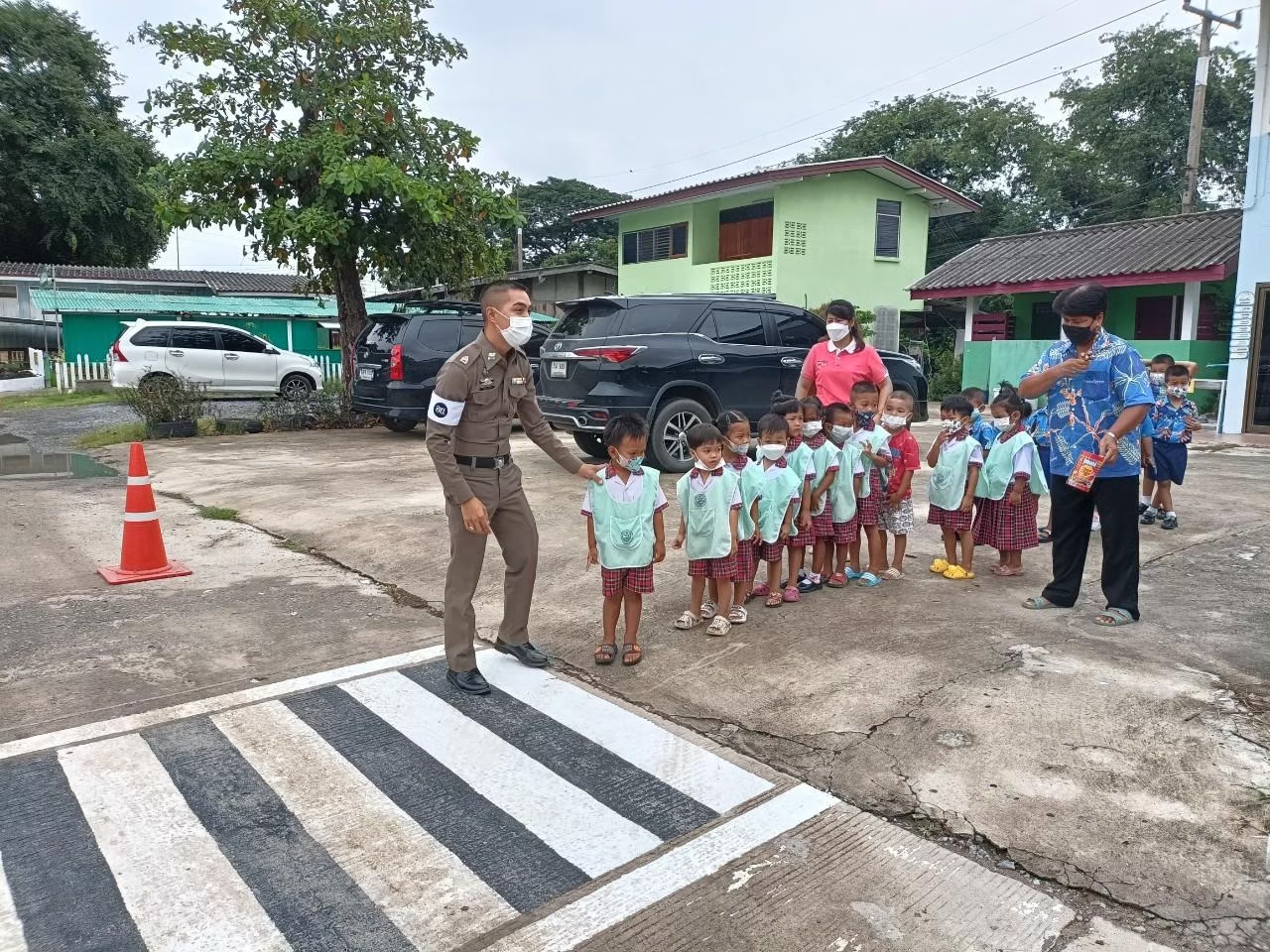 18 กุมภาพันธ์ 2568 จ.ส.ต.คเณศ พวงมะลิ เจ้าหน้าที่ตำรวจจราจร สภ.ลาดชะโด ได้ให้ความรู้แก่เด็กอนุบาลโรง