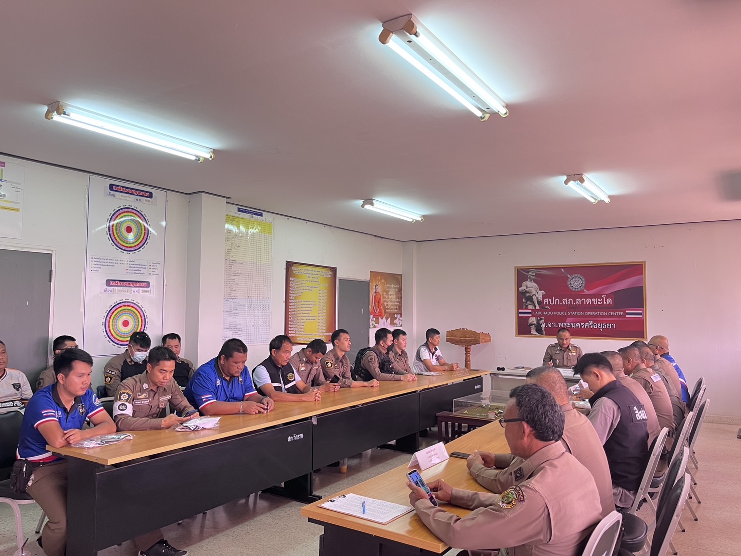25 กุมภาพันธ์ 2568 พ.ต.ท.ศุภกิจ กิจเมฆ สว.สภ.ลาดชะโด พร้อมด้วยข้าราชการตำรวจได้จัดประชุมและอบรมเพื่อ