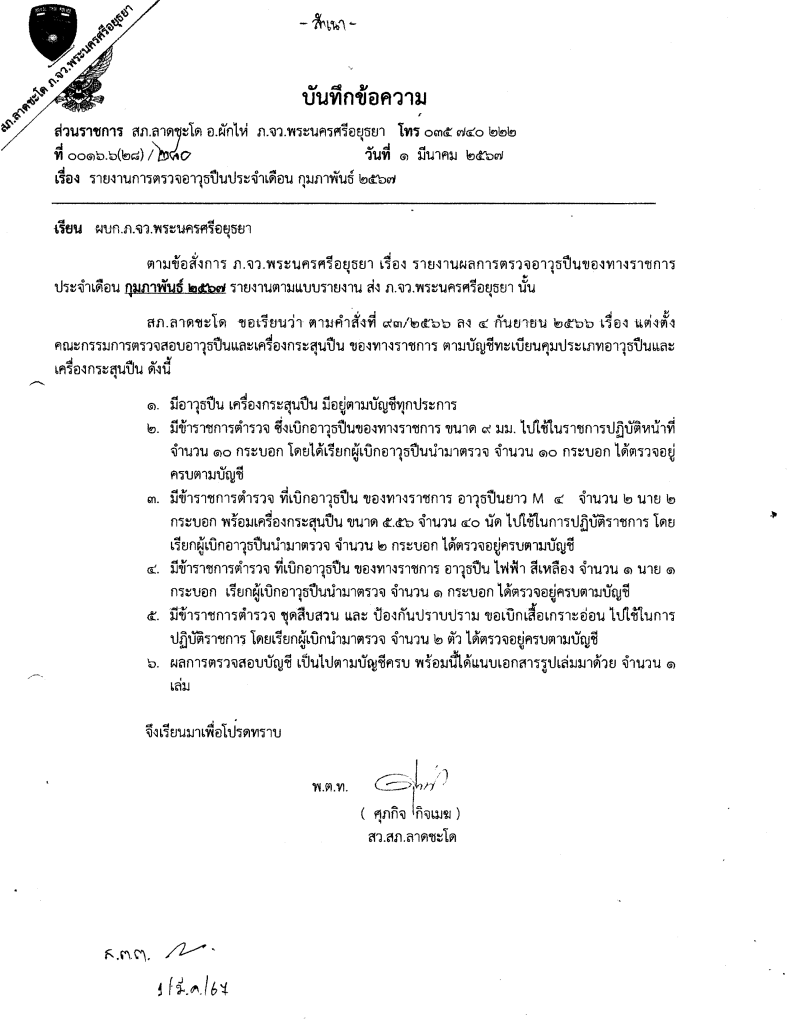 รายงานการจัดการทรัพย์สินทางราชการ ของบริจาค และการจัดเก็บของกลางเดือน ก.พ.67