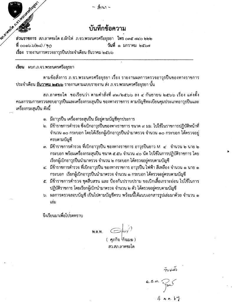 รายงานการจัดการทรัพย์สินทางราชการ ของบริจาค และการจัดเก็บของกลางเดือน ธ.ค.66
