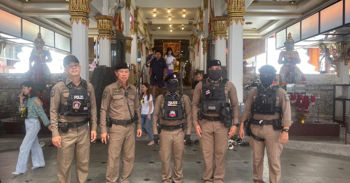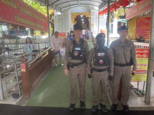ชุดไล่ล่า สภ.ลาดชะโด จำนวน 4 นาย ว.4 รักษาความปลอดภัยและอำนวยความสะดวกให้แก่นักท่องเที่ยว