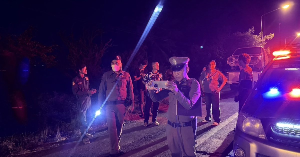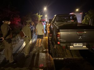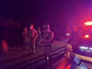 ร.ต.อ.อดิศักดิ์ สาธร รอง สว.(สอบสวน) สภ.บางปะหัน ช่วยราชการ สภ.ลาดชะโด ตรวจสอบสถานที่เกิดเหตุรถยนต์กระบะชนท้ายรถบรรทุก 10 ล้อ บริเวณทางแยกหน้า อบต.นาคู ต.นาคู อ.ผักไห่ จ.พระนครศรีอยุธยา