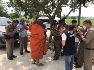 พระครูปลัดสราวุธ ปัญญาวุโธ (พระอาจารย์ปืน) พระเกจิอาจารย์ในพื้นที่ลาดชะโด ได้เดินทางมา สภ.ลาดชะโด เพื่อดูการปรับปรุงอาคารที่ทำการ โดยมีความประสงค์ช่วยสนับสนุนงบประมาณในการปรับปรุงติดตั้งตะแกรงกันนกพิราบ บริเวณชั้น 3 อาคารที่ทำการ ทั้งนี้ ได้ปะพรมน้ำมนต์และมอบเครื่องรางให้แก่ข้าราชการตำรวจในสังกัด เพื่อเป็นสิริมงคลและสร้างขวัญกำลังใจ