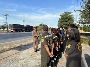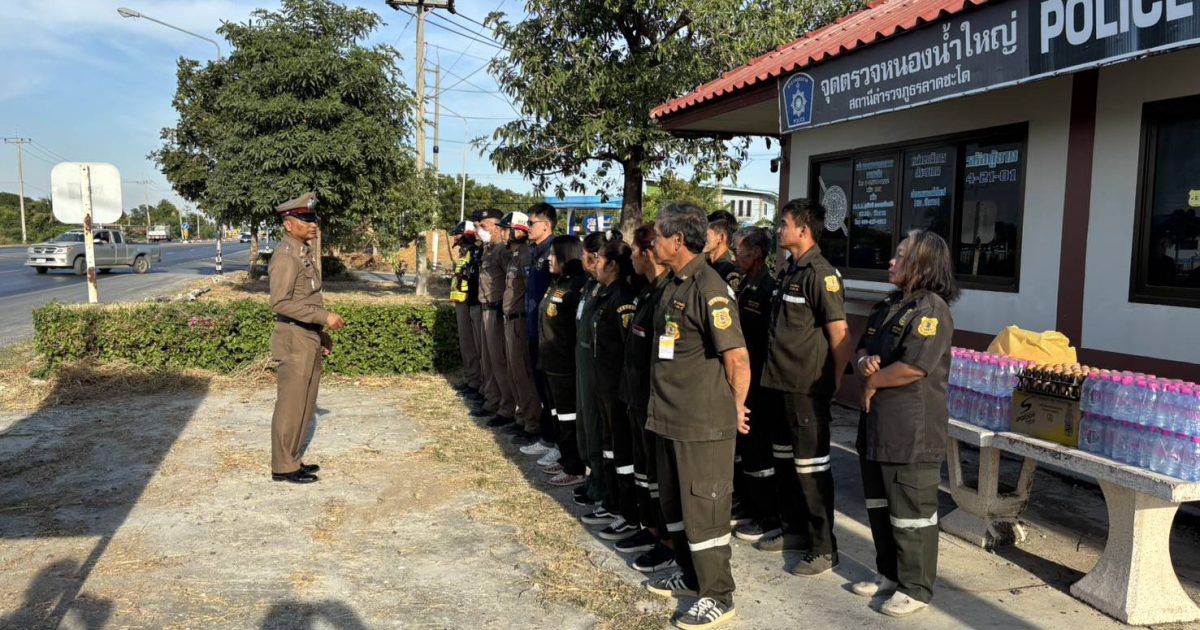 พ.ต.ท.ศุภกิจ กิจเมฆ สว.สภ.ลาดชะโด พร้อมด้วยเจ้าหน้าที่ตำรวจจราจร , สายตรวจรถยนต์ และอาสาสมัครในพื้นที่ ร่วมปล่อยแถวเตรียมความพร้อมการปฏิบัติในช่วงเทศกาลปีใหม่ 2568 เพื่อป้องกันเหตุและอำนวยความสะดวกการจราจร ให้กับประชาชนในเขตพื้นที่รับผิดชอบ
