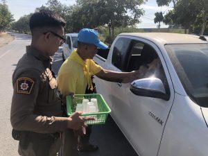 กำลังจิตอาสา ได้ร่วมอำนวยความสะดวกการจราจรและแจกน้ำดื่มให้ผู้ใช้รถใช้ถนนในช่วงเทศกาลปีใหม่ 2567 เพื่อป้องกันการเกิดอุบัติเหตุ