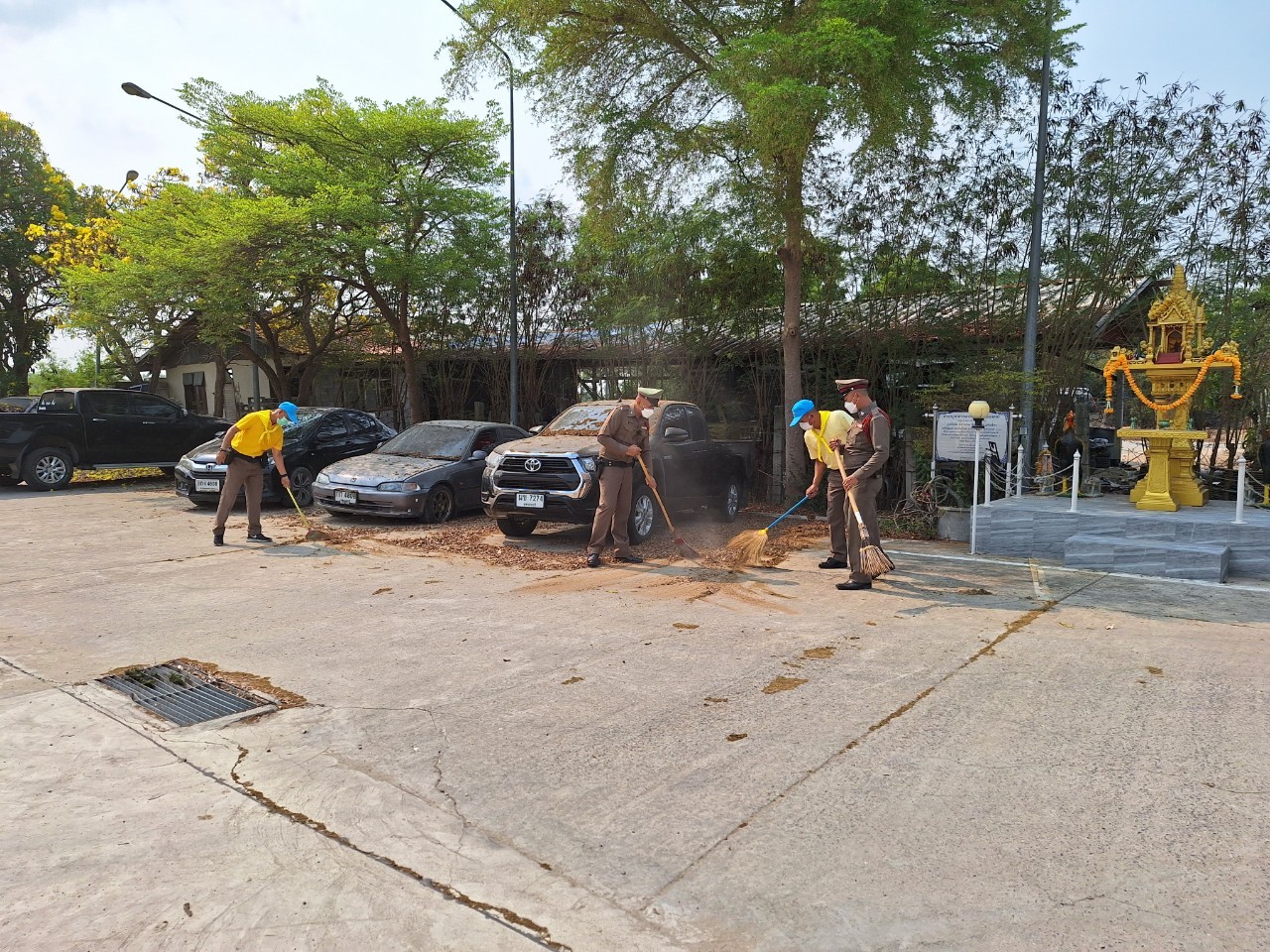 ทำความสะอาดบริเวณรอบอาคารที่ทำการ สภ.ลาดชะโด