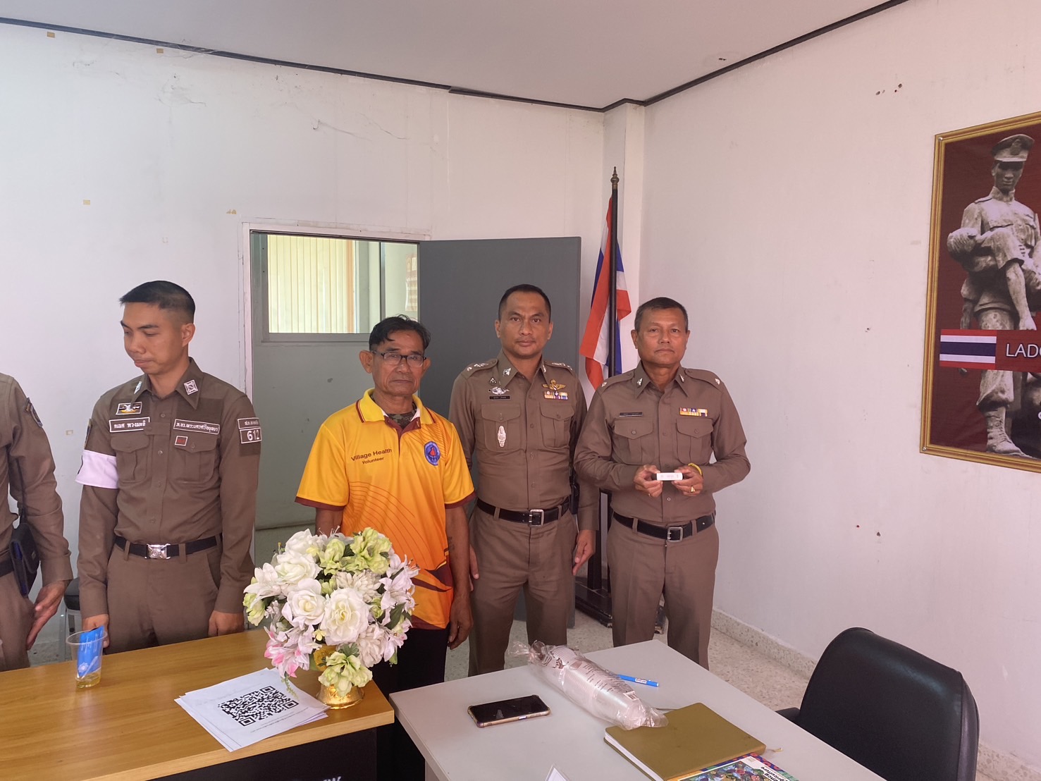 15 กุมภาพันธ์ 2567 นางวันเพ็ญ สบาย , นายกองพศ ธรรมรังษี คณะกรรมการ กต.ตร.สภ.ลาดชะโด และ จ.ส.ต.คเณศ พ