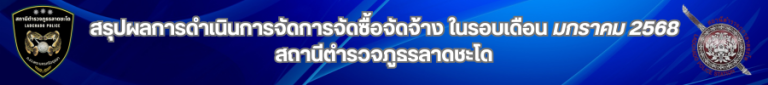 สถานีตำรวจภูธรลาดชะโด ได้สรุปผลการดำเนินการจัดซื้อจัดจ้าง (สขร.1) ประจำเดือน โดยมีข้อมูลรายละเอียดผลการจัดซื้อจัดจ้าง ได้แก่ งานที่ซื้อหรือจ้างวงเงินที่ซื้อหรือจ้าง ราคากลาง วิธีการซื้อหรือจ้าง รายชื่อผู้เสนอราคาและราคาที่เสนอ ผู้ได้รับกำรคัดเลือกและราคาที่ตกลง เหตุผลที่คัดเลือกโดยสรุป เลขที่และวันที่ของสัญญำ หรือข้อตกลงในกำรซื้อหรือจ้าง โดยจำแนกข้อมูลเป็นรายเดือน เผยแพร่เป็นประจำทุกเดือน  ช่วง 6 เดือนแรกของปีงบประมาณ พ.ศ. 2568 มีรายละเอียดดังปรากฏด้านล่างนี้